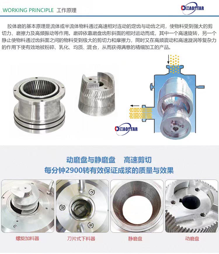 可代替并優于石磨,砂磨機、球磨機、乳勻機、乳化機、三輥機、搗碎機等工作。亦可按照客戶對加工物料不同的酸度、堿度、濃稠度等性質特殊要求定制生產。