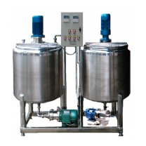 實驗室30-100L小型多功能分散乳化均質罐-分散均質研磨罐-多功能乳化均質研磨機組主要經過均質機和管線式研磨機的單道或多道回流工序到單罐或雙罐的反復連續運行而自動進行超微粒研磨,高剪切均質、破碎、分散、混合、攪拌等在線運行,并且可以通過控制閥門操控在線管道中物料流向使加工的液料在乳化研磨罐與混合調配罐罐體(夾層內膽可通冷、熱導體進行加熱、冷凝作用;不銹鋼罐體內外壁作拋處理)之間互相運作循環及攪拌機的攪拌器低速攪拌和高速分散相結合的工作機理可使多種物料配者分級分散出料、攪料均勻、分散、乳化、研磨、混合、粉碎、攪拌等操控來實行直接出料提高機械化生產, 并通過溫控儀、電控柜組成一體化, 數字智能化。具有自動溫控等多功能采用一體化組合。